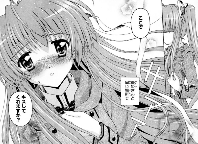 放課後の帰り道、準一を連れて訪れたのは優姫と初めて出会った公園🏞。そこで2人がキス💏した場所で湊は自分の本音を語る。準一の気持ちを第一に考えていたが、今ばかりは自分の気持ちを優先して告白。加えて告白の恥じらい+キス💏のおねだり+髪をほどけて長髪にして女👩をアピールで可愛さ倍増で、これ見てコイツ絶対ワイのモンにしてやると決心した瞬間だった・・・。
