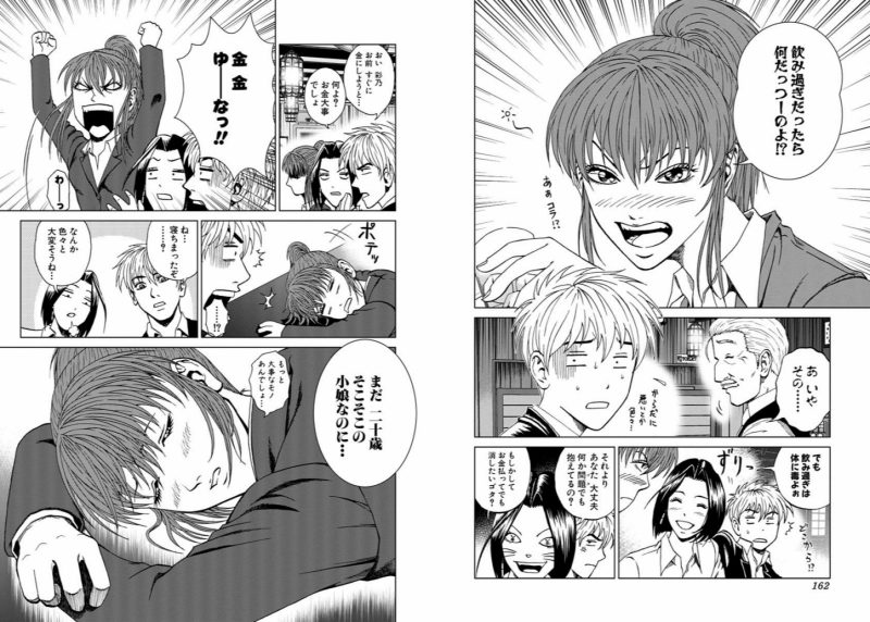 交渉が進まずヤケ酒🥃で泥酔状態になっているかおりは白虎への絡みがきっかけで交渉の代理を依頼する流れになり、自身が工場🏭で働くようになる経緯を語り始める。