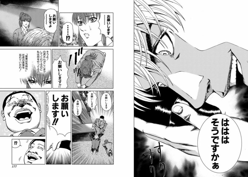無理難題な条件を提示してくる桜田に対しておねだり戦術をさせるように仕向けて白虎に土下座させて靴👞を撫でさせる。それを見てかおりさんはここまで商談してくれた白虎のため、大恩ある社長のために身を切って一緒におねだり土下座をする。