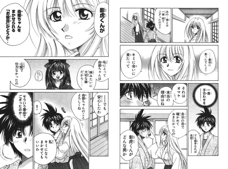 影虎が由姫にとって信頼できる人間かどうか試そうと誘惑するが、実は彼女自身も影虎に対してまんざらでもなかった様子。